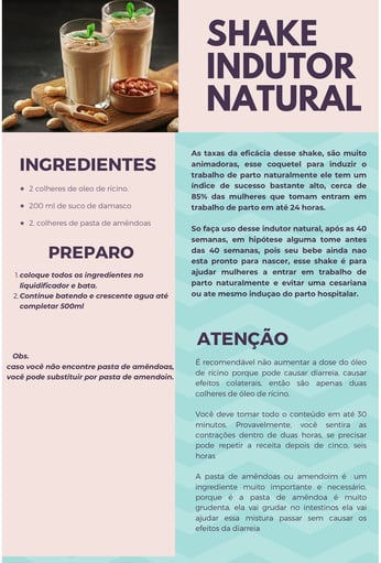 A receita secreta do shake para indução do parto natural, 85% das mulheres que tomaram esse shake entraram em trabalho antes de 24 horas.